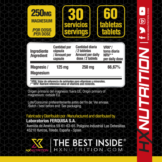 La fórmula de Citrato de Magnesio de HX Premium está compuesta por ácido cítrico y magnesio, lo cual garantiza una mejor absorción en el organismo y un mejor rendimiento deportivo.