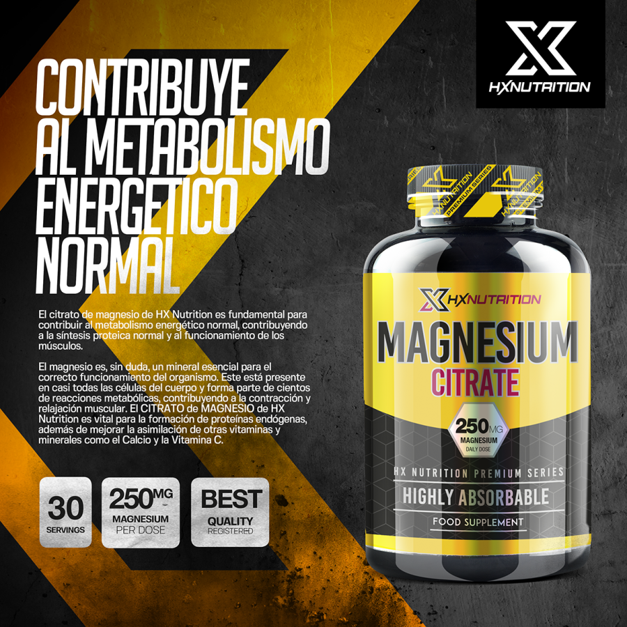 El citrato de magnesio de HX Premium es fundamental para contribuir al metabolismo energético normal, contribuyendo a la síntesis proteica normal y al funcionamiento de los músculos.